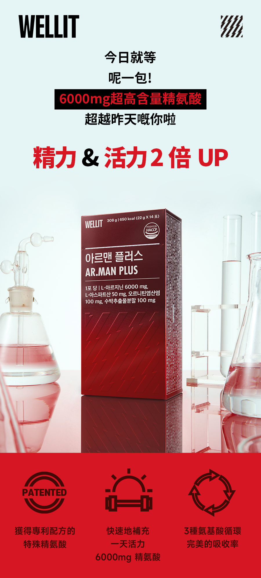 ✅6,000mg精氨酸獨有專利配方 提供一整天活力